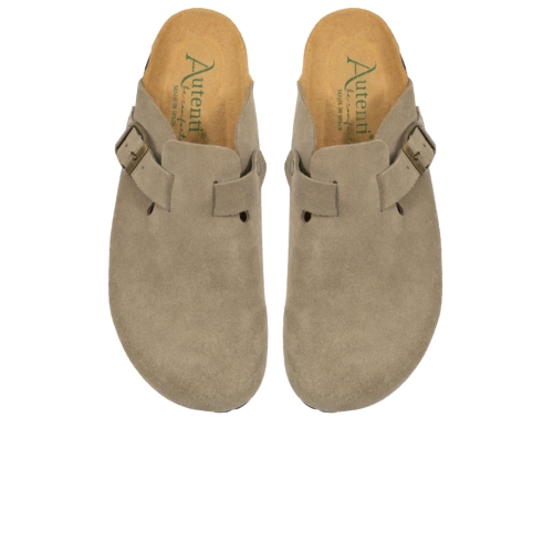 Descubre el máximo bienestar con el zueco Autenti 355. Este modelo icónico destaca por su acabado en piel de serraje de alta calidad en un versátil tono topo, ideal para combinar con cualquier look casual o de estar por casa.