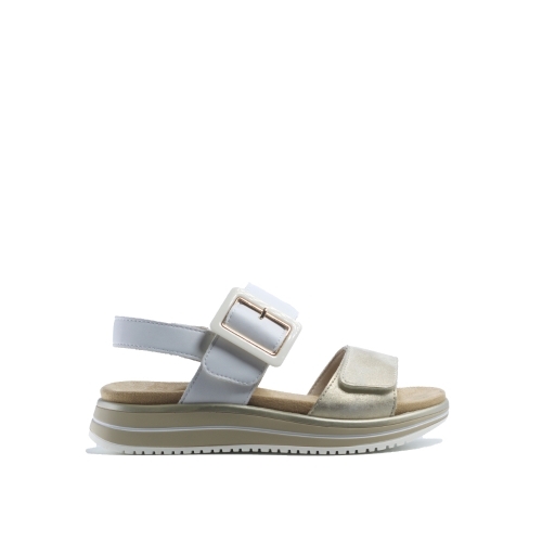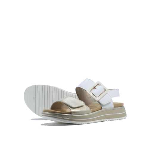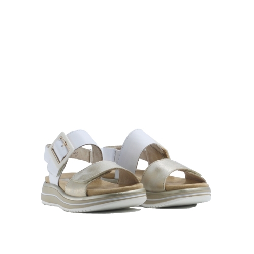 Sandalia de tiras Remonte en blanco y dorado, ligera, comoda, perfecta para el día a día. ç