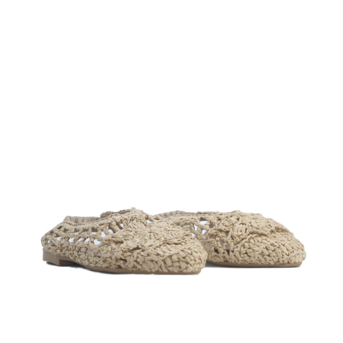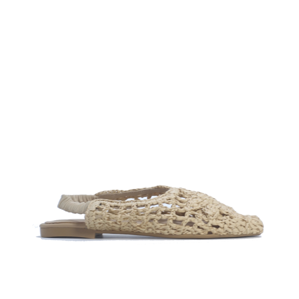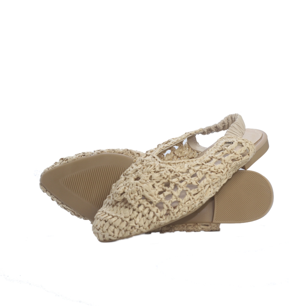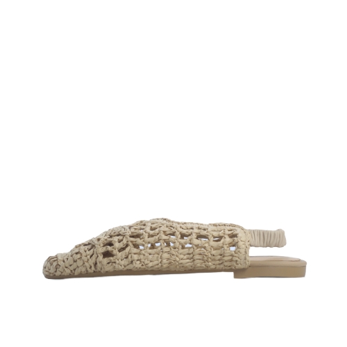 Bailarina mujer abierta atrás, plana en rafia beige.