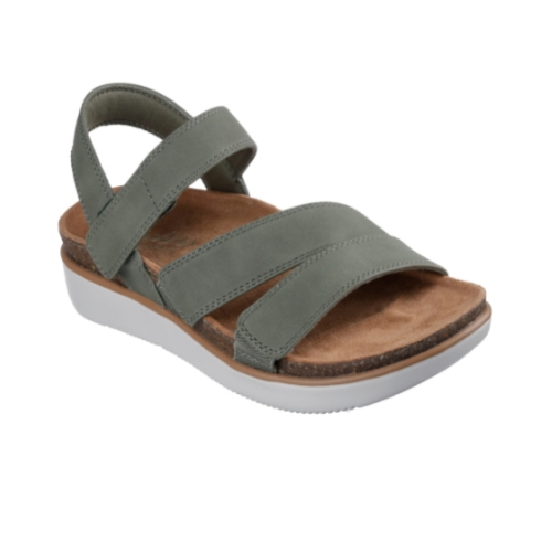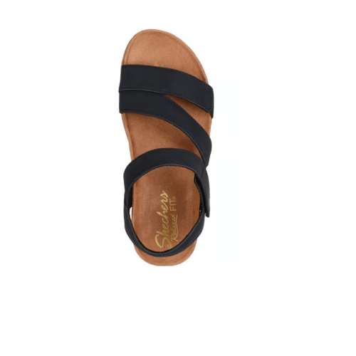 Presenta un elegante diseño de tiras cruzadas que combina tejido elástico suave con refuerzos sintéticos para un ajuste que se adapta a tu pie como un guante. Gracias a su plantilla con amortiguación Skechers Memory Foam™, disfrutarás de una pisada suave y fresca durante todo el día, ya sea en la ciudad o en tus escapadas de vacaciones.