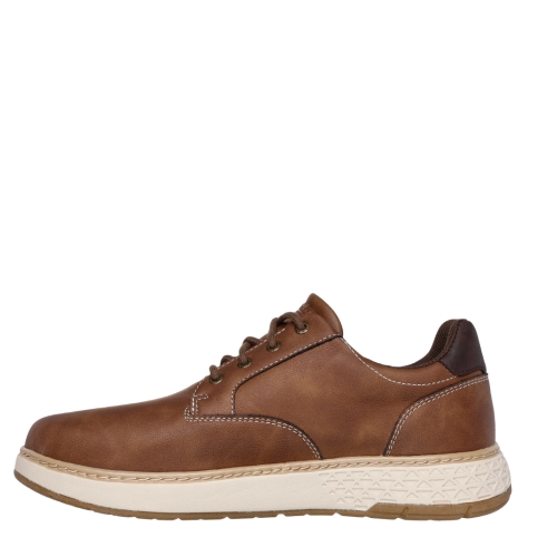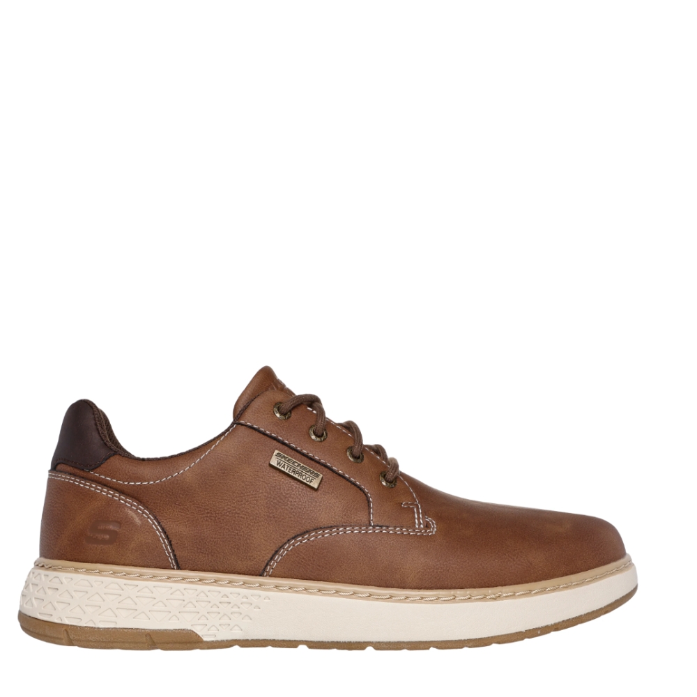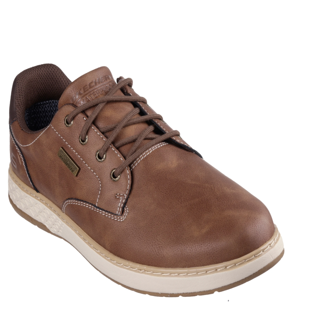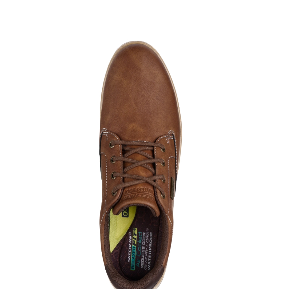 La comodidad y el estilo clásico se unen en Skechers Relaxed Fit®: Garlan - Pryor. Cuenta con una parte superior de piel vegana impermeable con cordones, una plantilla Skechers Air-Cooled Memory Foam® con infusión de carbón y amortiguación Skechers Goga Mat Arch™ para un mejor apoyo.