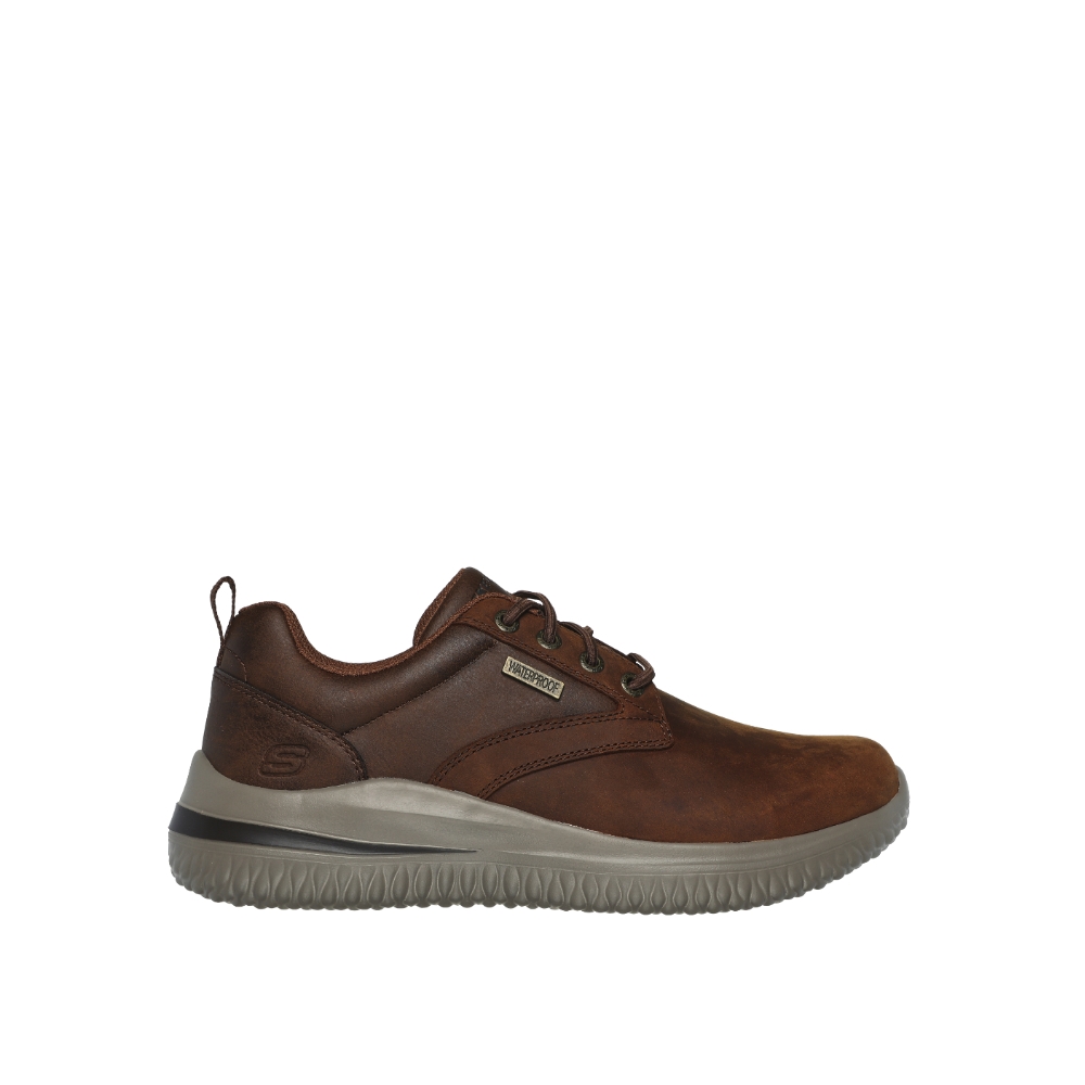 Un versátil modelo favorito que se vuelve aún más cómodo en la zapatilla Skechers Delson 3.0 - Glavine. Este modelo con cordones elásticos presenta una parte superior de piel resistente al agua, una plantilla Skechers Air-Cooled Memory Foam® Classic Fit™ con infusión de carbón y amortiguación Skechers Goga Mat Arch™.