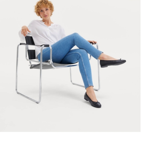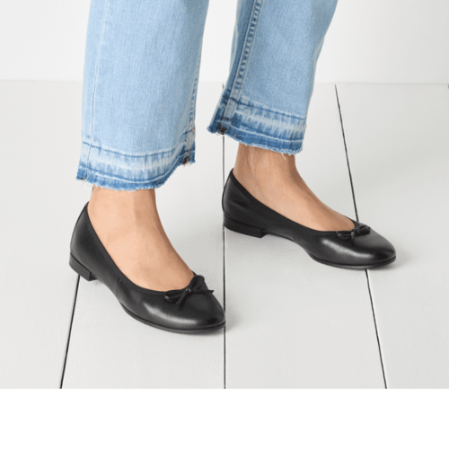 Bailarina en piel con punta redondeada, silueta clásica, plantilla confort,  y suela ligera y flexible que ofrece una comodidad duradera.