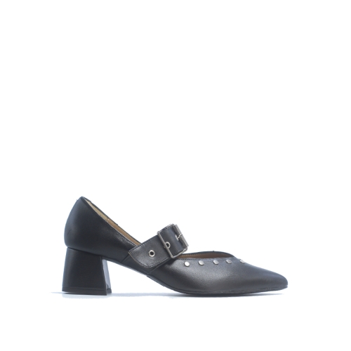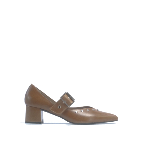 Zapato en piel color cuero tacón medio, forrado en piel.